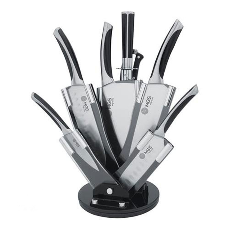 سرویس چاقو آشپزخانه 9 پارچه استیل ام جی اس مدل KS8011B از مدل های بسیار زیبا و در عین حال پر کاربرد در آشپزخانه است که مخاطبان می توانند از هر کدام از ابزارهای آن نهایت استفاده را ببرند.