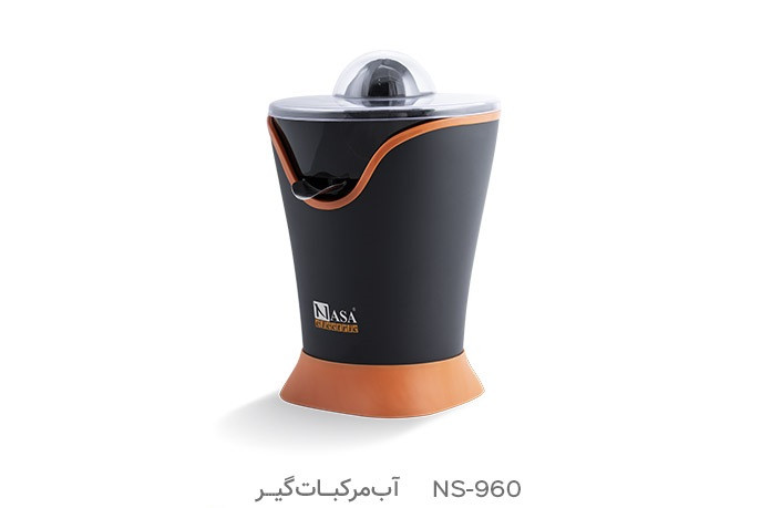 آب مرکبات گیر NS-960 از نوشیدنی سازهای حرفهای ناسا الکتریک میباشد. این محصول دارای موتوری پرقدرت و بیصدا است، که با حداکثر توان مصرفی 150 وات قابلیت آب گیری انواع مرکبات سفت و سخت را دارد. کارایی ساده این آب مرکبات گیر را باید مدیون طراحی آرگونومیکی آن بود. برای استفاده از این دستگاه کافی است میوه را به دو قسمت برش دهید و سپس هر قسمت آن را بر روی مخروطی فشار دهید، تا آبِ میوه گرفته شود. دو عدد مخروطی بزرگ و کوچک برای این آب مرکبات گیر در نظر گرفته شده است، که امکان آب گیری انواع میوههای بزرگ نظیر پرتقال و میوههای کوچک مانند لیمو را فراهم آورده است. صافی این آب مرکبات گیر از جنس استیل ضد زنگ بوده و در برابر آبمیوه و آب مقاومت زیادی دارد و حتی به مرور زمان نیز با زنگ زدگی و تغییر رنگ مواجه نمیشود.